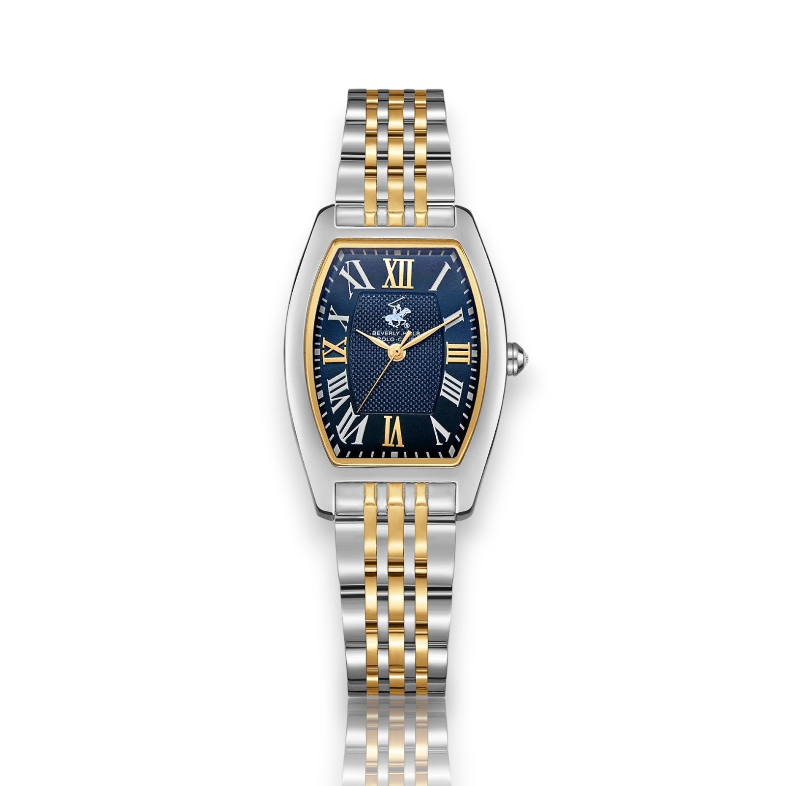שעון ה AVALON הוא שילוב מושלם בין אלגנטיות נצחית לאופנת עילית בהשראת האלגנטיות של Beverly Hills ומורשת המועדון האקסקלוסיבי של פולו. עם גוף אובאלי כסוף מוזהב מוברש, הוא תכשיט עם אישיות. ✨ הלוח הכחול עמוק עם האינדקסים הרומיים הקלאסיים מעניקים לו מראה יוקרתי ומתוחכם. ✨