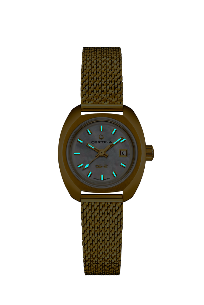 הכירו את Certina DS-2 Lady Gold Mother of Pearl – שעון נשים קלאסי ויוקרתי בעיצוב רטרו-שיק.
