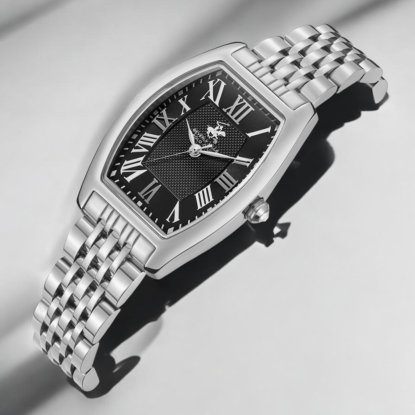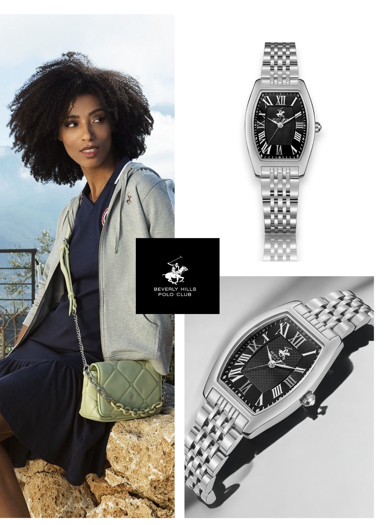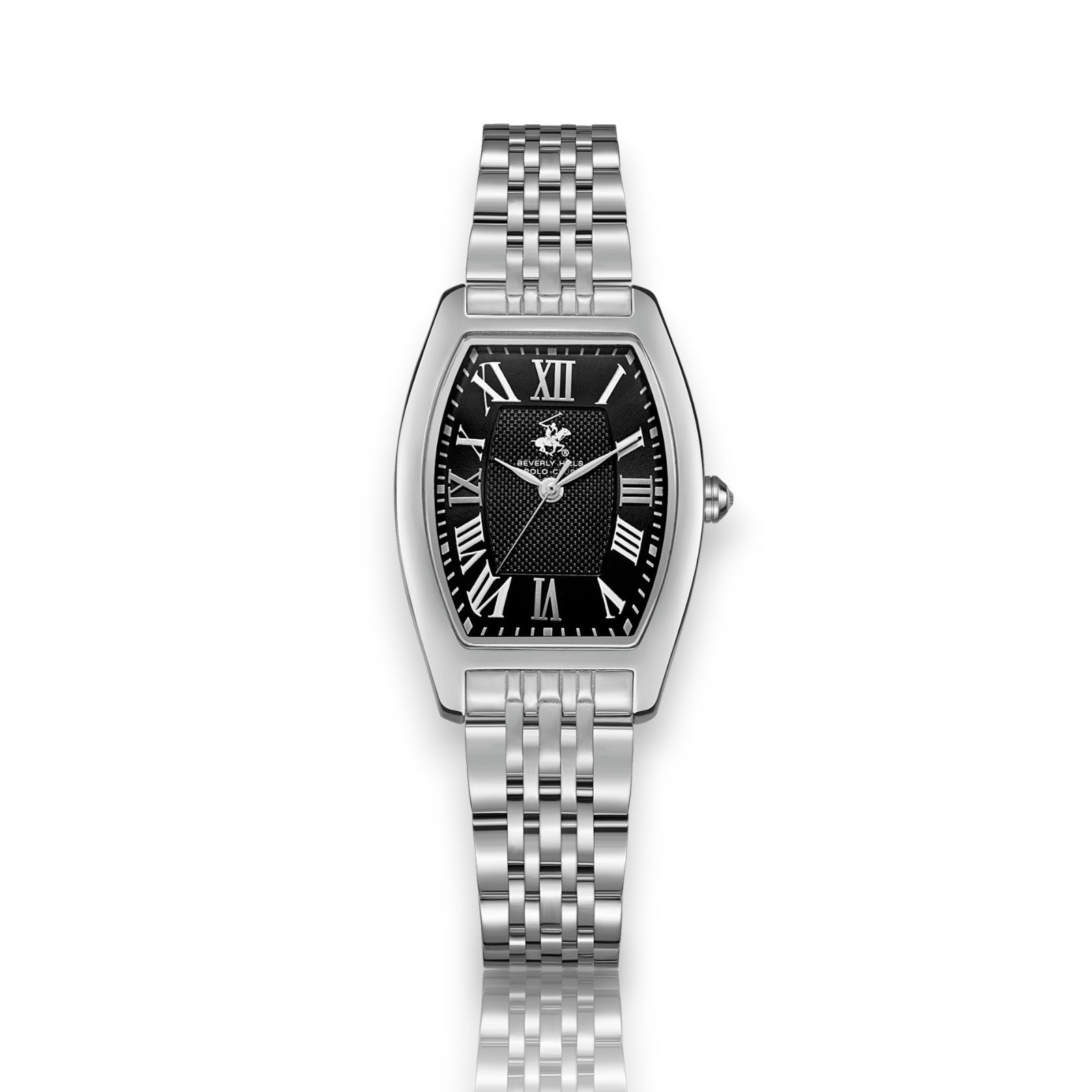 שעון ה AVALON הוא שילוב מושלם בין אלגנטיות נצחית לאופנת עילית בהשראת האלגנטיות של Beverly Hills ומורשת המועדון האקסקלוסיבי של פולו. עם גוף אובאלי כסוף מוברש, הוא תכשיט עם אישיות. ✨ הלוח השחור עם האינדקסים הרומיים הקלאסיים מעניקים לו מראה יוקרתי ומתוחכם. ✨