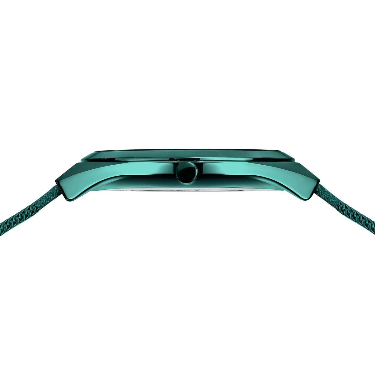 קולקציה זו מבית Beringהסקנדינבית משלבת בצורה חלקה יופי מינימליסטי עם מגע של זוהר. לוח השעון הירוק שלו משלים בצורה מושלמת את מארז הנירוסטה בציפוי IP, בעוד סימוני קריסטל נוצצים מוסיפים מגע של זוהר עדין. הלוח מוגן ע"י זגוגית ספיר עמידה בשריטות.