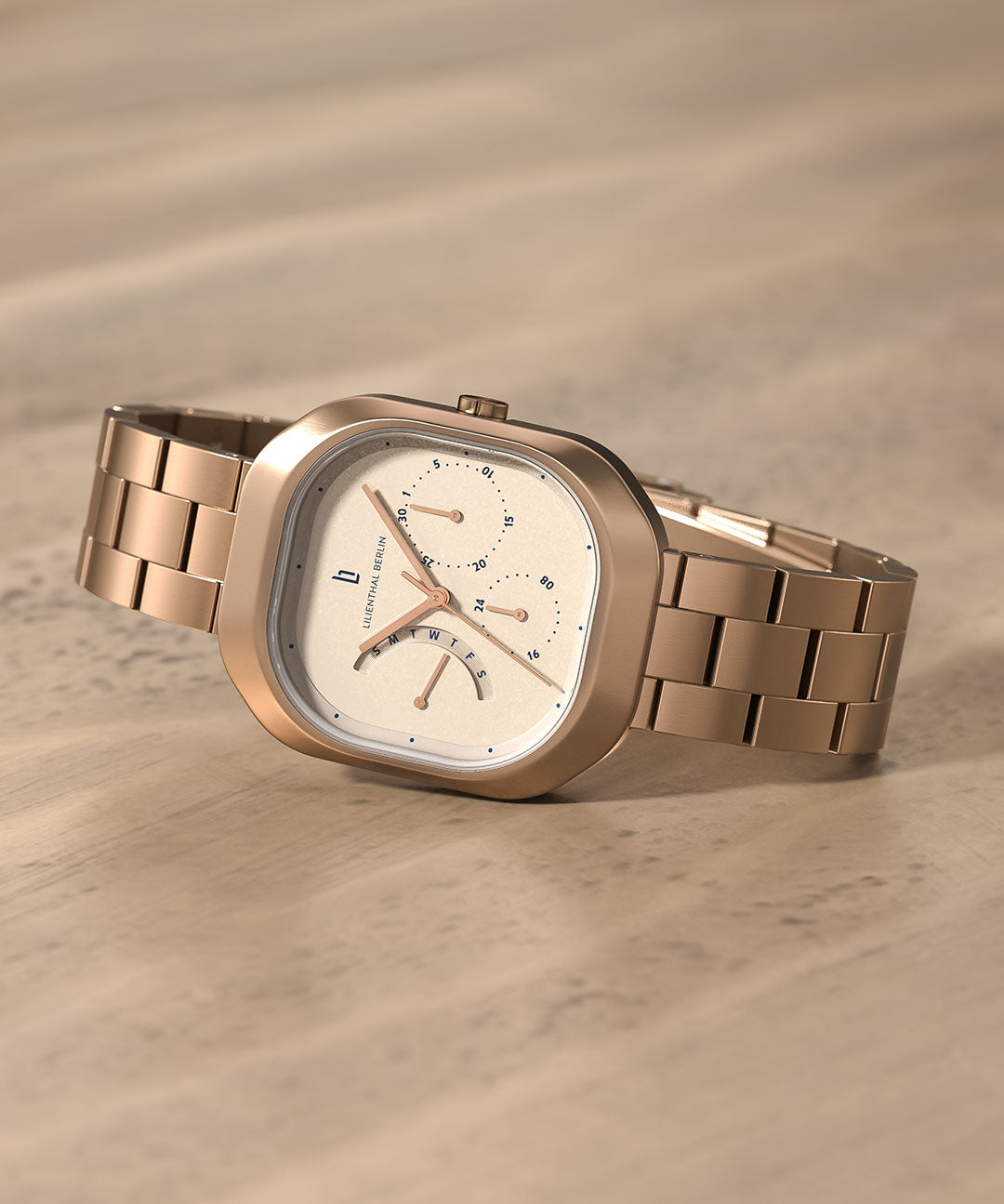 הלוח בגוון שמפניה עם גימור מט מעניק לו מראה מינימליסטי ושיקי, והמחוגים והספרות בצבע משלים מוסיפים נגיעה של אלגנטיות קלאסית. עם מראה כרונוגרף ותאריכון, השעון הזה הוא לא רק יפה, אלא גם פרקטי להפליא.
