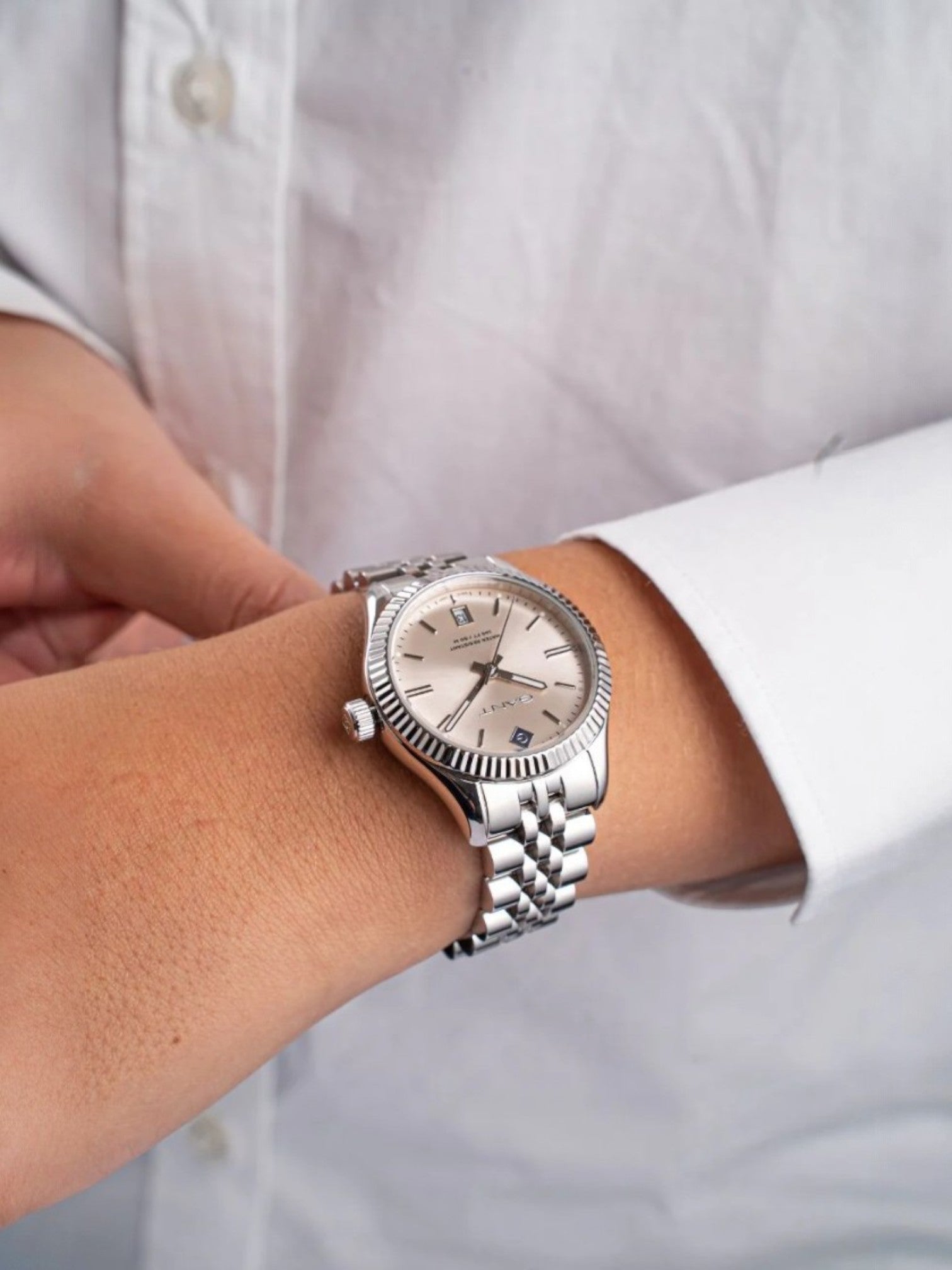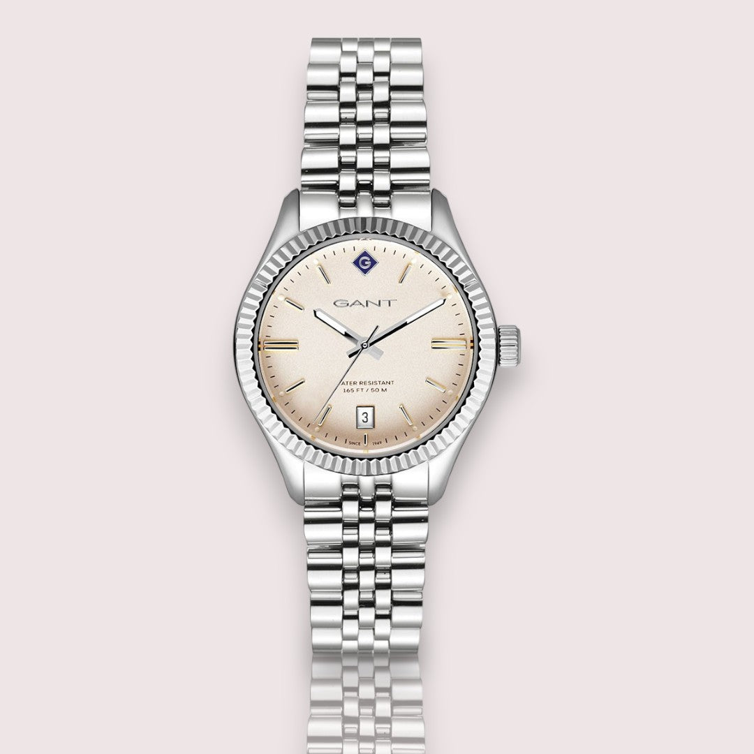עם גוף כסוף מלוטש ורצועת פלדה קלאסית,Jubile השעון הזה הוא תכשיט קלאסי. 💖 אבל מה שבאמת הופך אותו למיוחד הוא לוח השעון בגוון שמפניה עם לוגו המותג במקום הספרה 12. ✨ הוא פשוט מהפנט! 🤩