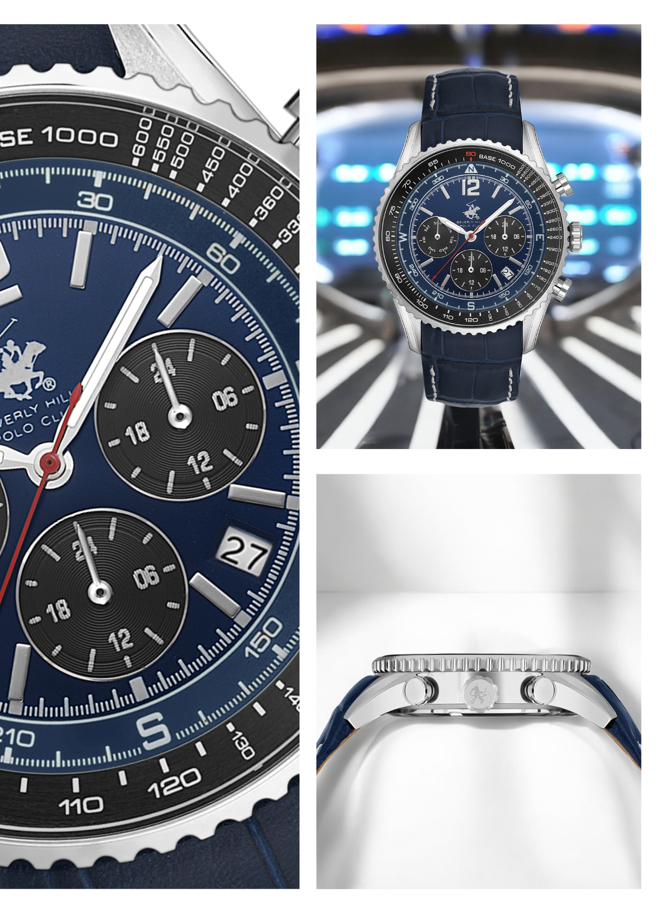 בהשראת האלגנטיות הנחשקת של Beverly Hills ומורשת המועדון האקסקלוסיבי של פולו, שעון זה עם לוח כחול עמוק משולב בנגיעות שחור ורצועת עור תואמת הוא שילוב מושלם של נוכחות ועוצמה.