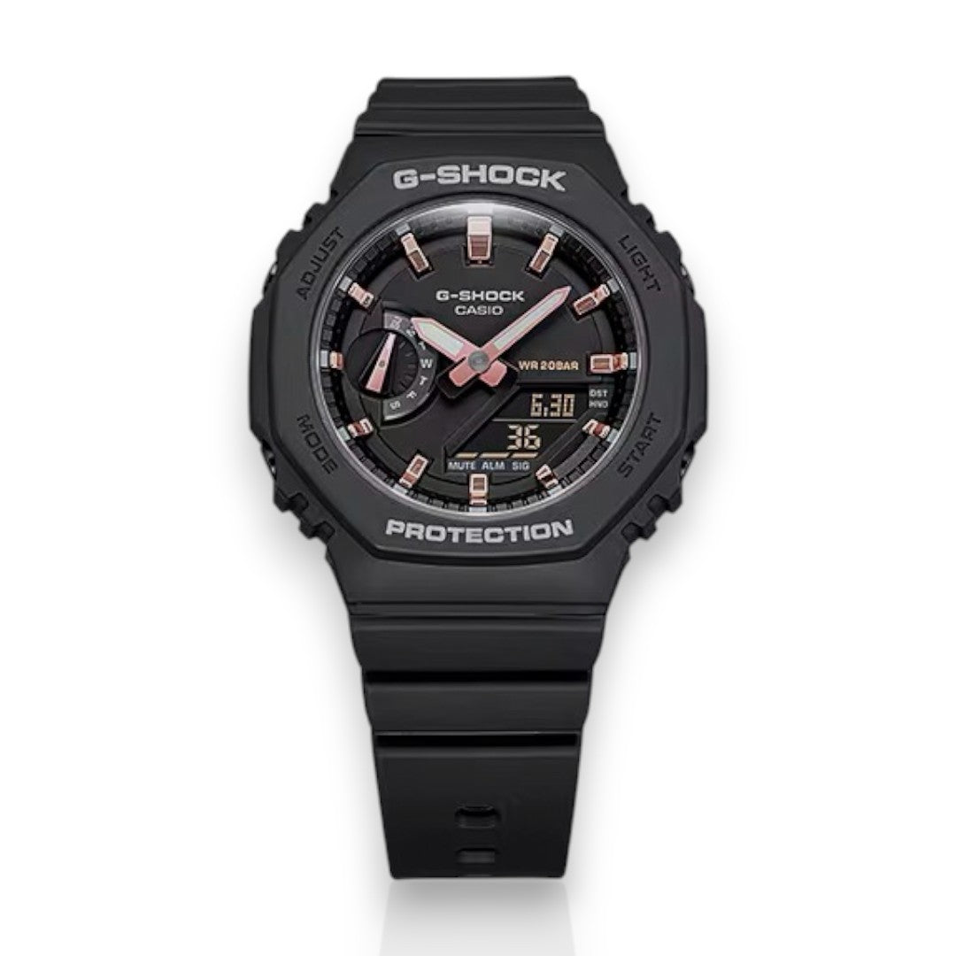 שעון זה מבית Casio G-Shock, המותג היפני האייקוני המזוהה עם עמידות בלתי מתפשרת וטכנולוגיה מתקדמת, מציג את דגם ה-GMA-S2100-1A – גרסה מוקטנת ודקה יותר של ה"קאסיוק" הפופולרי (GA-2100), המיועדת להתאים בצורה מושלמת גם לפרקי כף יד קטנים יותר. זהו שעון המשלב מראה אנלוגי-דיגיטלי קומפקטי עם העמידות האגדית של G-Shock, והכל בגימור שחור מט קלאסי.