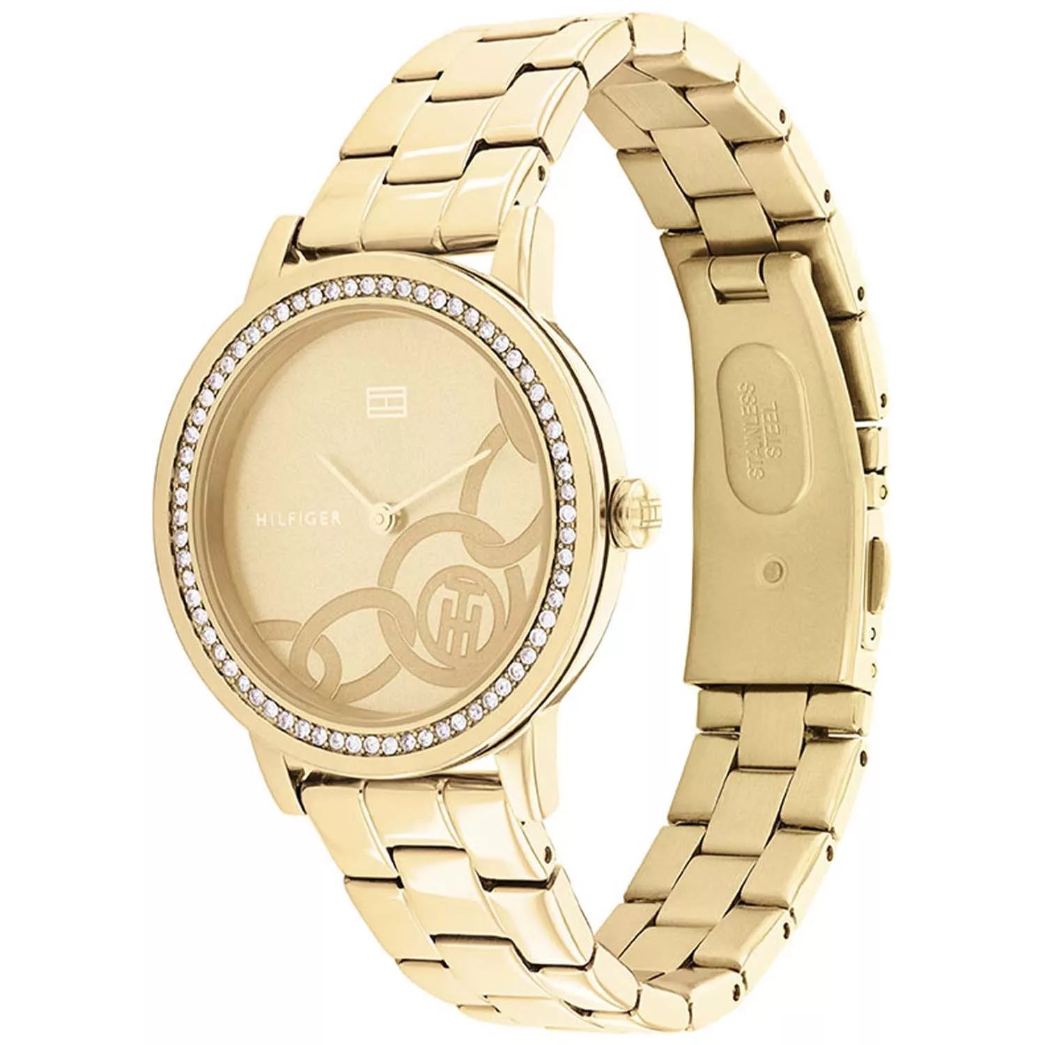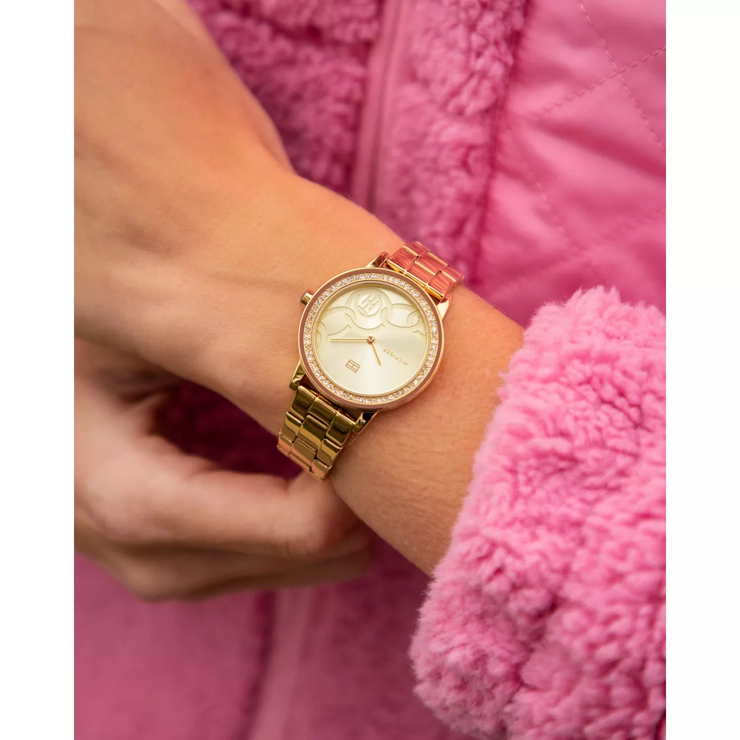 עם גוף בצבע זהב מנצנץ, רצועה תואמת ומסגרת קריסטלים נוצצים, השעון הזה הוא תכשיט של ממש! 💖 אבל מה שבאמת הופך אותו לייחודי הוא לוח הפנינה עם עיטורי מונוגרמה עדינים שיוצרים מראה וינטג' עם טוויסט מודרני. ✨ הוא פשוט מהפנט! 🤩