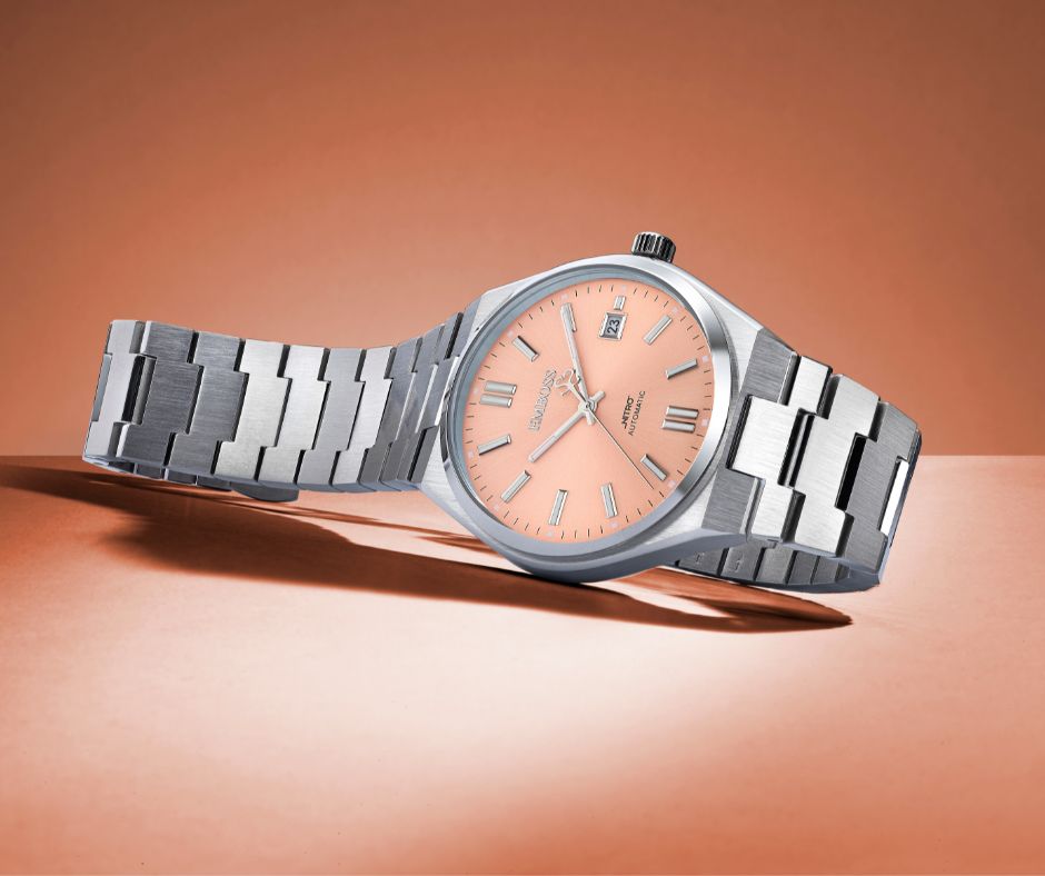 זגוגית הספיר תשמור על מראה ללא שריטות לשנים ורצועת הפלדה האינטגרלית, המעוצבת בקפידה עם גימור משולב של פוליש מבריק ומאט יחד עם לוח בגוון סלמון מהמם, מעניקה לו מראה יוקרתי ומתוחכם.
