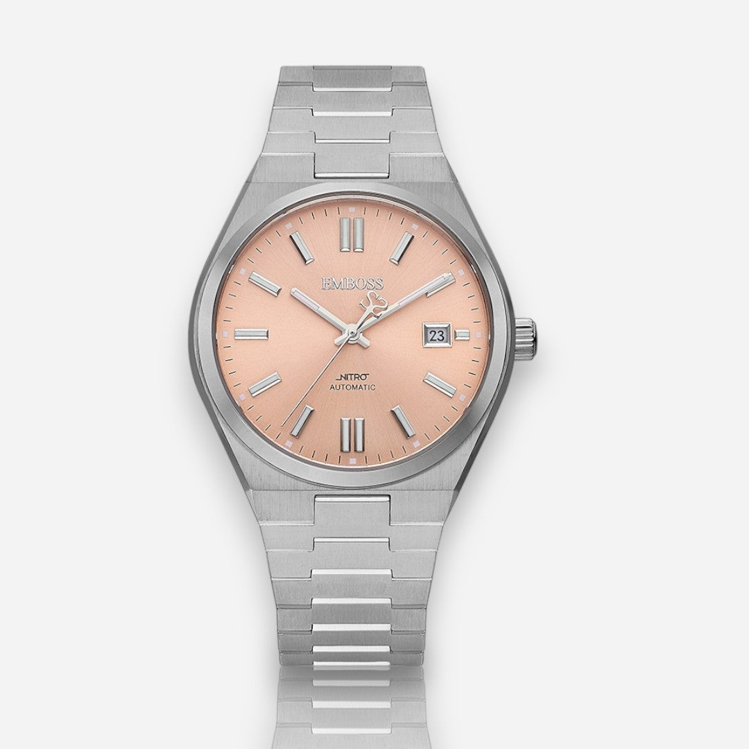 השעון האוטומטי הזה מבית EMBOSS הוא שילוב מושלם בין אלגנטיות לחדשנות. עם גוף במראה אובלי ומסגרת דקיקה מפלדת אל-חלד מוברשת, הוא משלב בצורה מושלמת בין מראה קלאסי לפרטים מודרניים. ✨